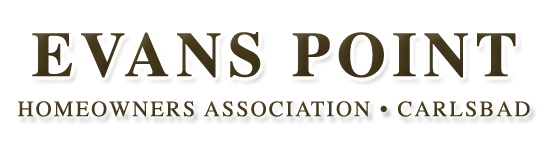 Welcome to the Evans Point Homeowners Association web site. The Evans Point HOA was started in 1997 to provide landscaping, architectural and common area oversight for the Westerlies and Windsong Shea Homes developments which includes 194 homes on the south side of Carlsbad, CA. We hope this site provides homeowners with relevant information about living in Evans Point including bylaws, CC&R's and goings-on in the neighborhood.
